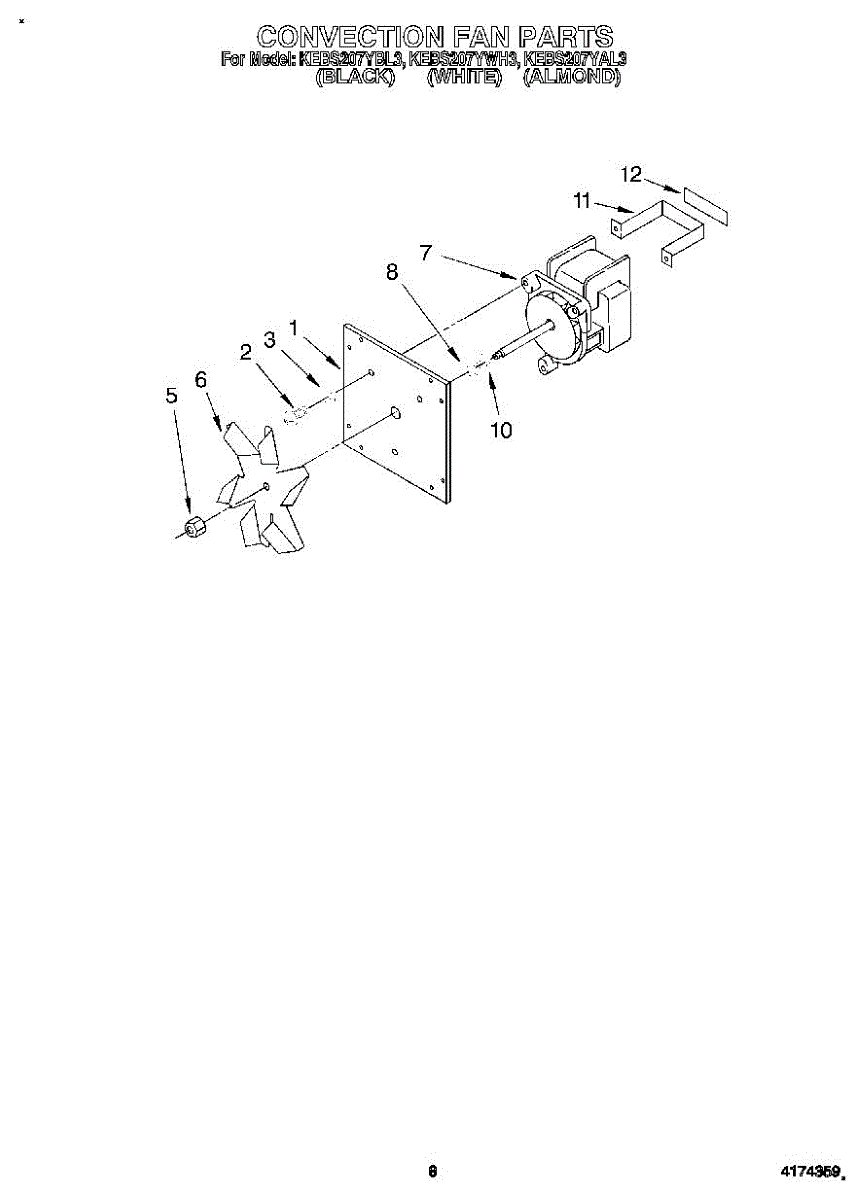 Parts for Kitchenaid KEBS207YAL3: 05 - Convection Fan Parts