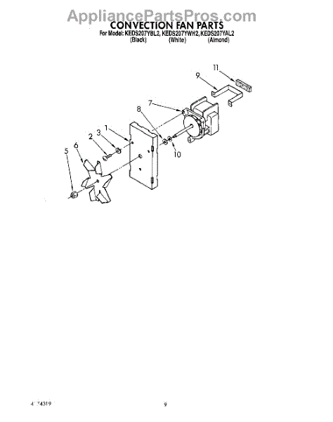 Parts for Kitchenaid KEDS207YWH2: 07 - Convection Fan Parts