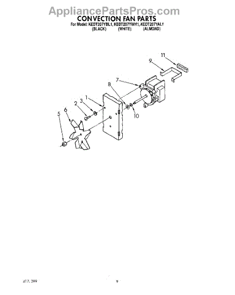 Parts for Kitchenaid KEDT207YAL1: 07 - Convection Fan Parts