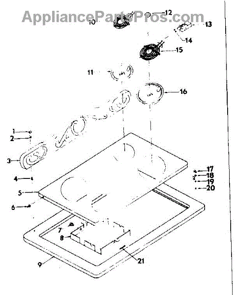 Parts for Kenmore 143.9007000 (1439007000, 143 9007000): Cook Top Assembly Parts