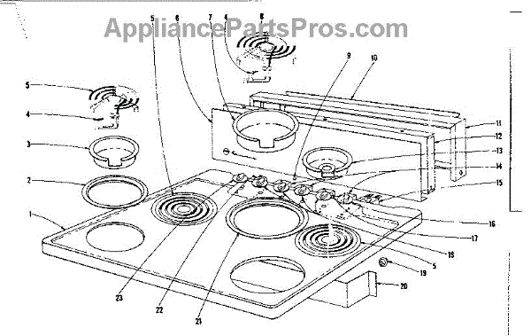 Parts for Kenmore 101.930630 (101930630, 101 930630): Cook Top And Backguard Section Parts