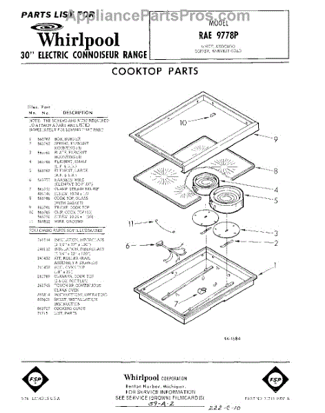 Parts for Whirlpool RAE9778P: 01 - Cook Top , Lit / Optional Parts