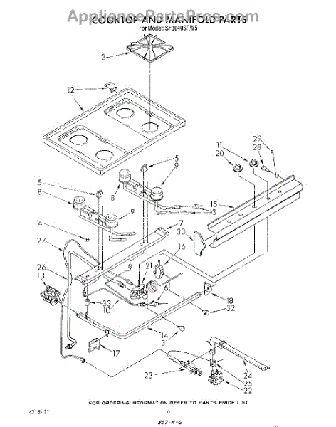 Parts for Whirlpool SF3040SRW5: 05 - Cook Top And Manifold , Literature Parts