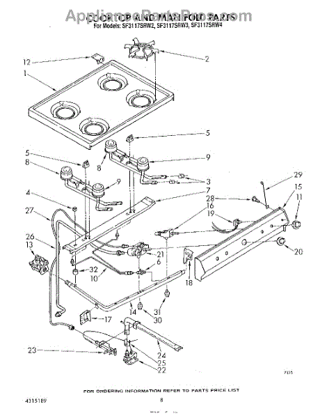 Parts for Whirlpool SF3117SRW3: 06 - Cook Top And Manifold , Literature Parts