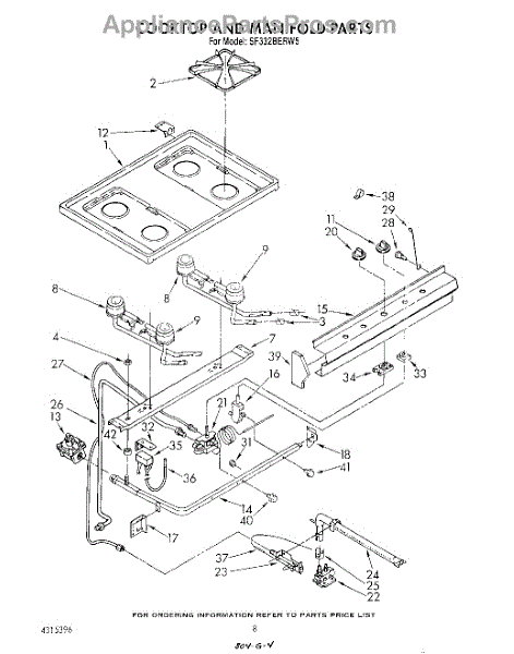 Parts for Whirlpool SF332BERW5: 06 - Cook Top And Manifold , Literature Parts