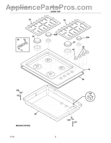 This main top is the flat cooktop surface that sits under burners and grates, restoring a secure, even work surface and protecting internal components from spills and debris. It helps your range look and function correctly. What it does: