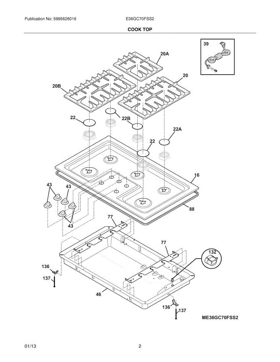 Cooktop gasket seals the unit to your countertop, preventing spills from leaking underneath. Replace if torn, cracked, or no longer sealing properly.