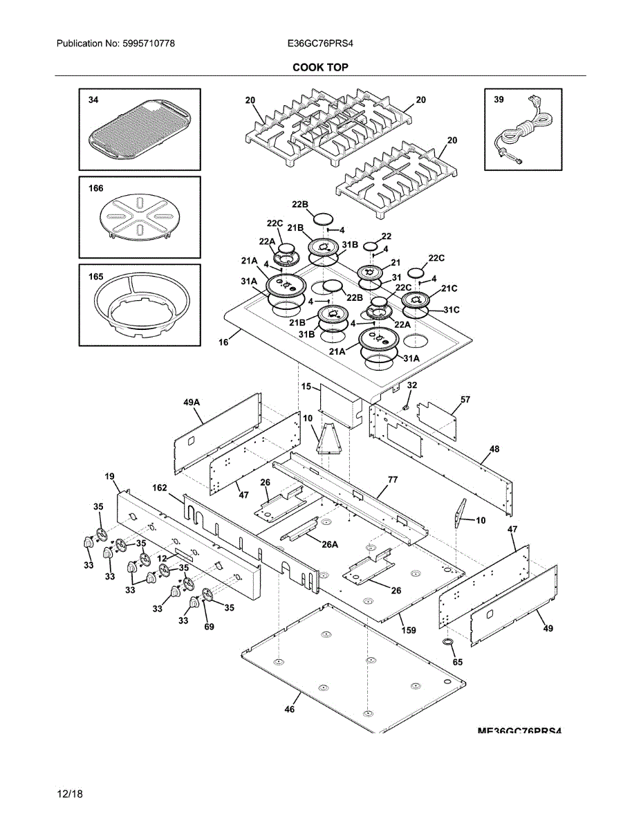 Replacement gas cooktop grate that supports cookware above burners. Installs over burner area. Replace if cracked, broken, warped, or missing.
