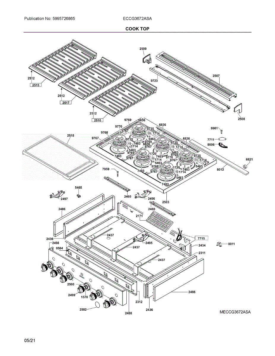 Trim assembly for gas cooktops. Installs around burners to create a finished edge. Replace if cracked, chipped, discolored, or missing pieces affect appearance.