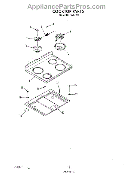 Parts for Roper F9257W0: 02 - Cook Top Parts
