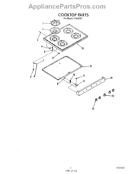 Parts for Whirlpool F6558L1: 03 - Cook Top Parts