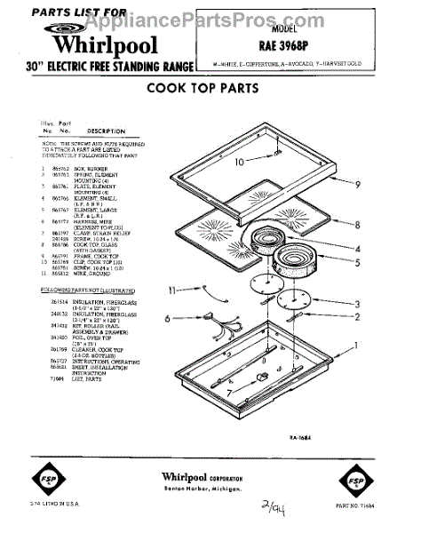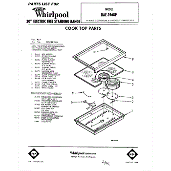 Parts for Whirlpool RAE3968P: 01 - Cook Top, Literature Parts