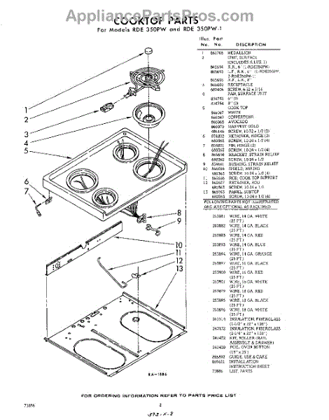 Parts for Whirlpool RDE350PW: 08 - Cook Top Parts