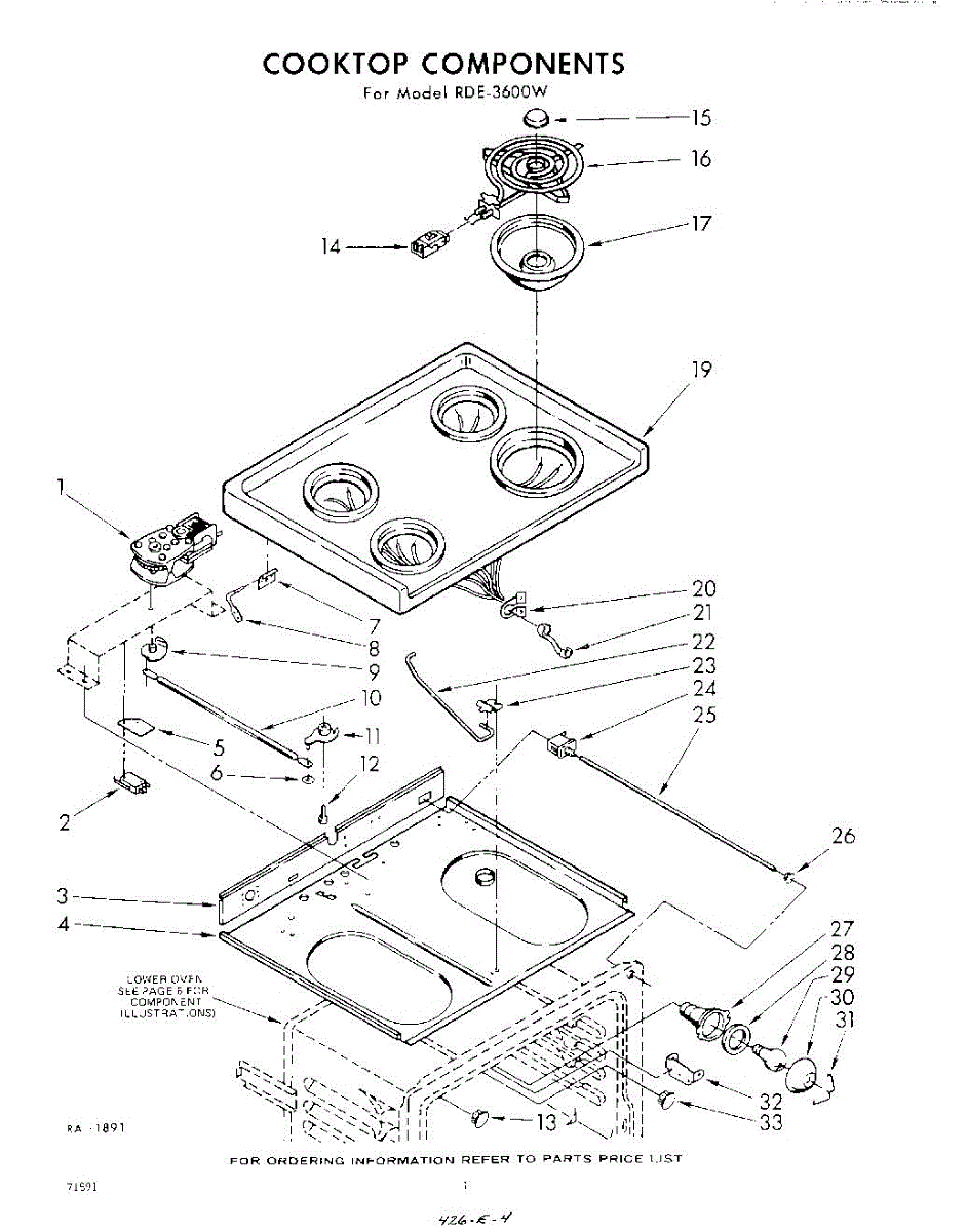 Parts for Whirlpool RDE3600W: 04 - Cook Top Parts