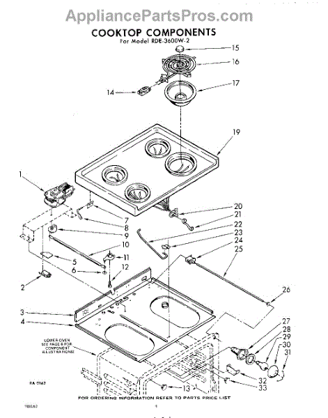 Parts for Whirlpool RDE3600W2: 04 - Cook Top Parts