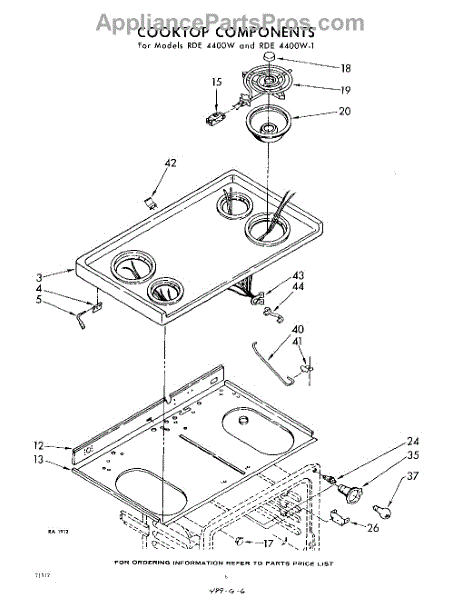 Parts for Whirlpool RDE4400W0: 06 - Cook Top Parts