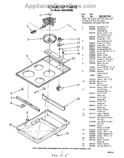 Parts for Whirlpool RDE630PN0: 05 - Cook Top Parts