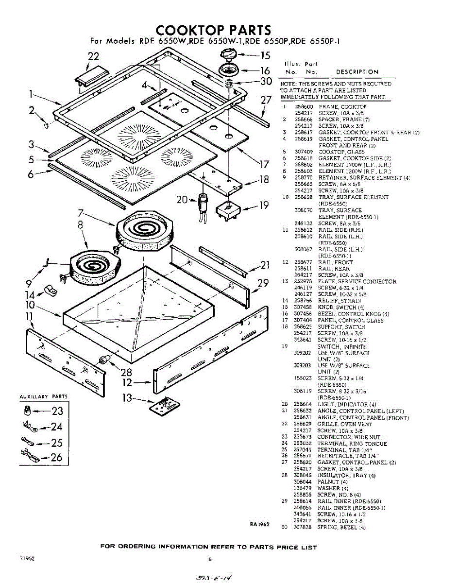 Parts for Whirlpool RDE6550W: 06 - Cook Top Parts