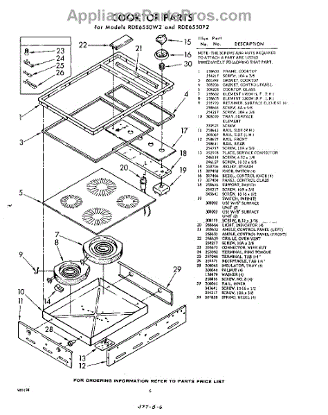 Parts for Whirlpool RDE6550W2: 06 - Cook Top Parts