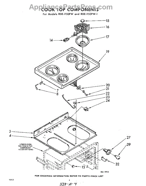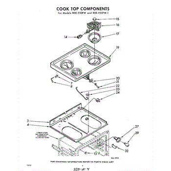 Parts for Whirlpool RDE950PW: 04 - Cook Top Parts