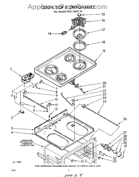Parts for Whirlpool RDE9600W: 04 - Cook Top Parts