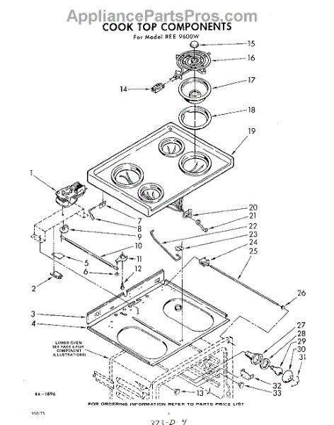Parts for Whirlpool REE9600W: 04 - Cook Top Parts