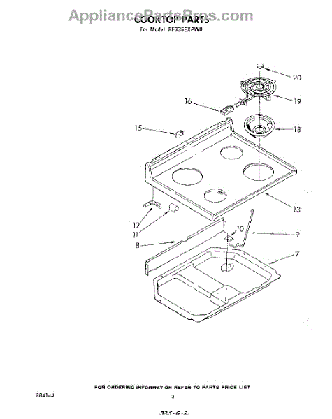 Parts for Whirlpool RF336EXPW0: 02 - Cook Top Parts
