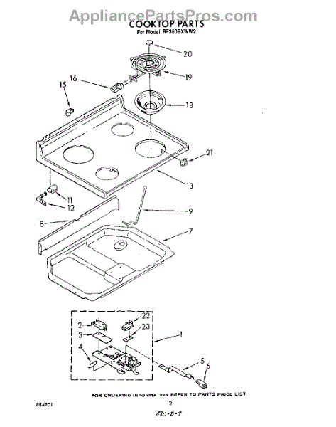 Parts for Whirlpool RF360BXWW2: 02 - Cook Top Parts