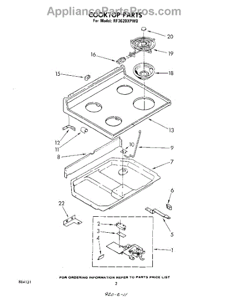 Parts for Whirlpool RF3620XPW0: 02 - Cook Top Parts