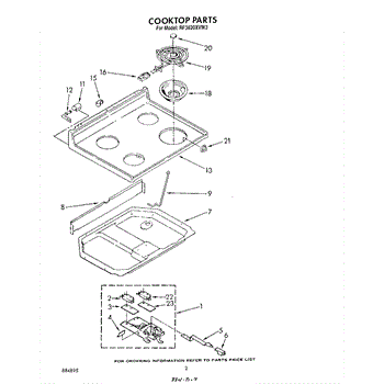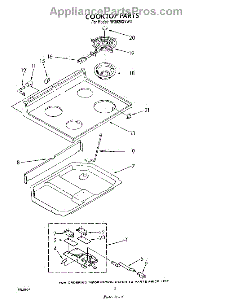 Parts for Whirlpool RF3620XVW3: 02 - Cook Top Parts