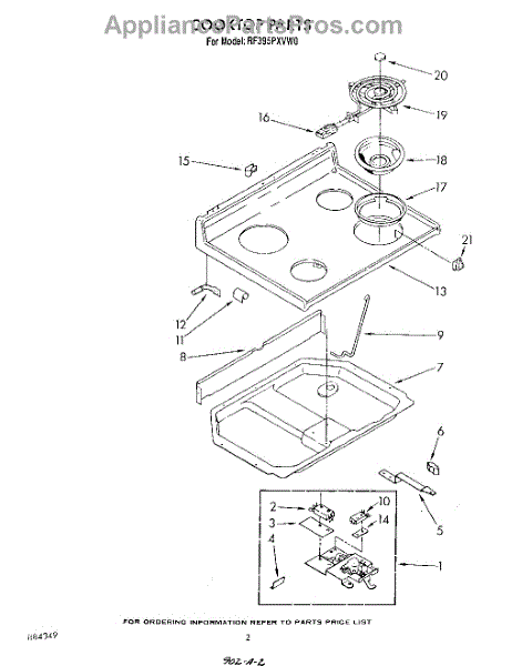 Parts for Whirlpool RF395PXVW0: 02 - Cook Top Parts