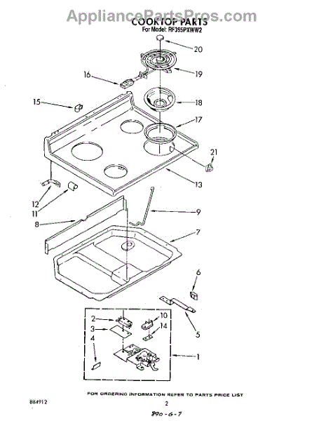 Parts for Whirlpool RF395PXWN2: 02 - Cook Top Parts