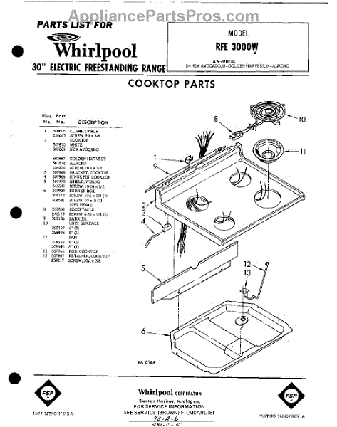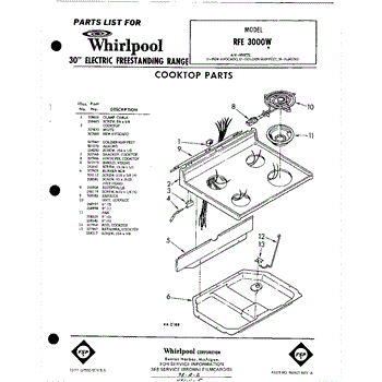Parts for Whirlpool RFE3000W: 01 - Cook Top Parts