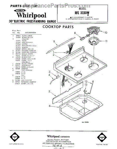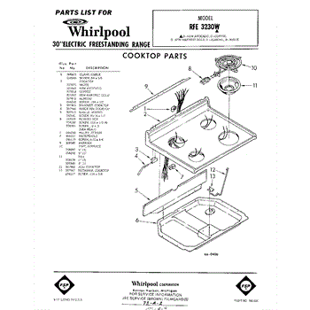 Parts for Whirlpool RFE3230W: 01 - Cook Top Parts