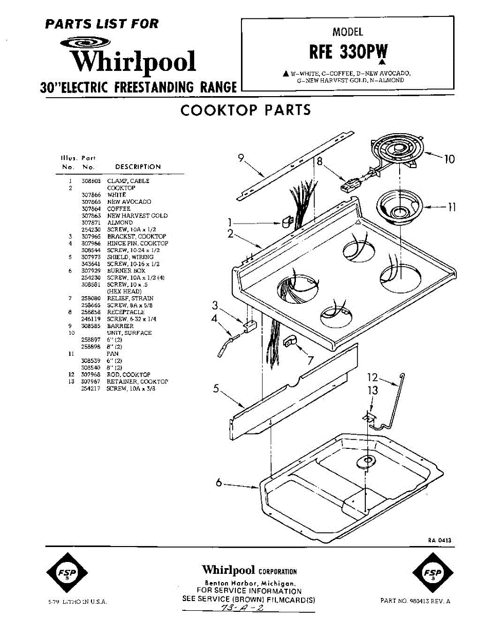 Parts for Whirlpool RFE330PW: 01 - Cook Top Parts