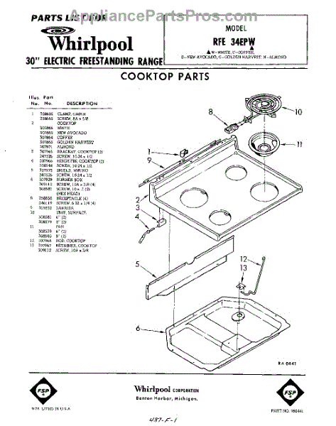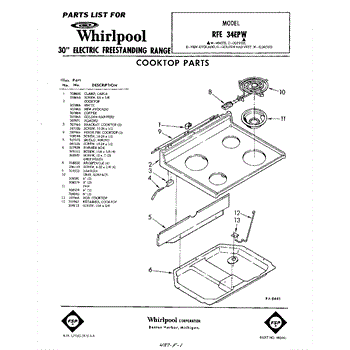 Parts for Whirlpool RFE34EPW: 01 - Cook Top Parts