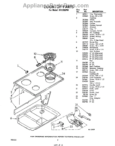 Parts for Whirlpool RFE390PW: 02 - Cook Top Parts