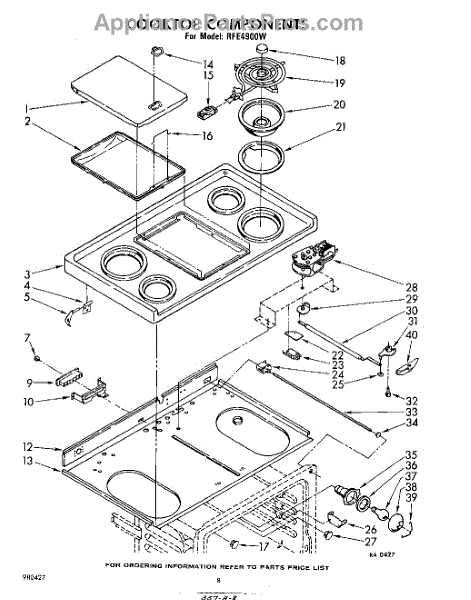 Parts for Whirlpool RFE4900W: 08 - Cook Top Parts