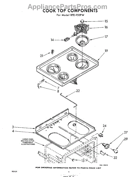 Parts for Whirlpool RFE950PW: 04 - Cook Top Parts