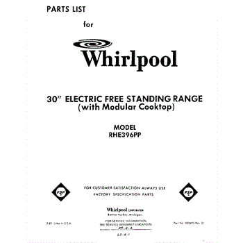 Parts for Whirlpool RHE396PP: 01 - Cook Top Parts