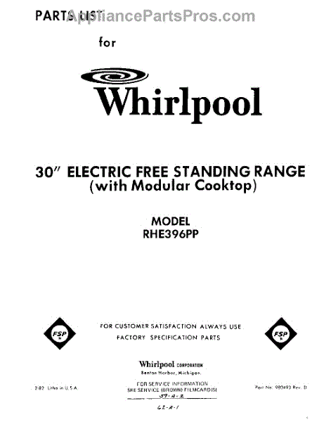 Whirlpool Range Parts