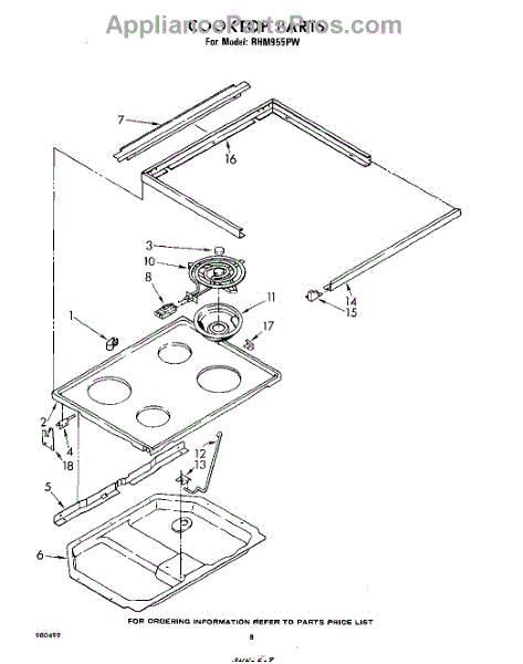 Parts for Whirlpool RHM955PW: 08 - Cook Top Parts