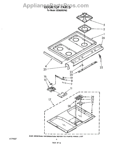 Parts for Whirlpool SE960PEPW2: 04 - Cook Top Parts