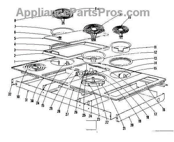 Parts for Kenmore 101.41642 (10141642, 101 41642): Cook Top Section Parts