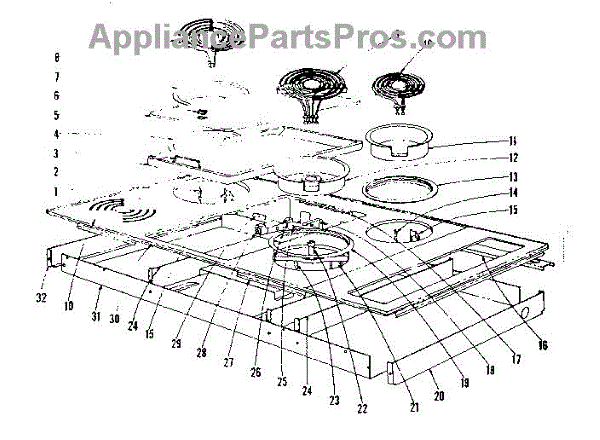 Parts for Kenmore 101.41738 (10141738, 101 41738): Cook Top Section Parts