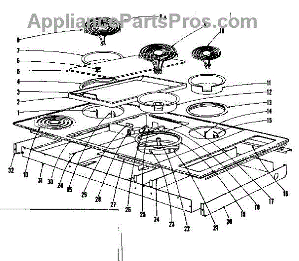 Parts for Kenmore 101.41750 (10141750, 101 41750): Cook Top Section Parts