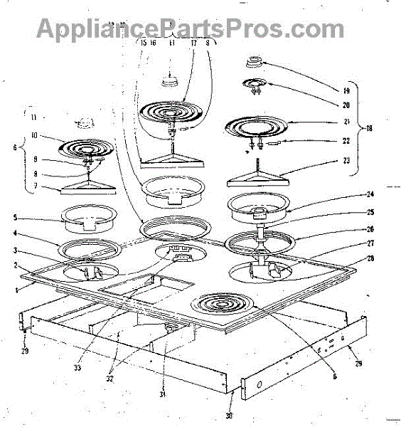 Parts for Kenmore 101.43611 (10143611, 101 43611): Cook Top Section Parts