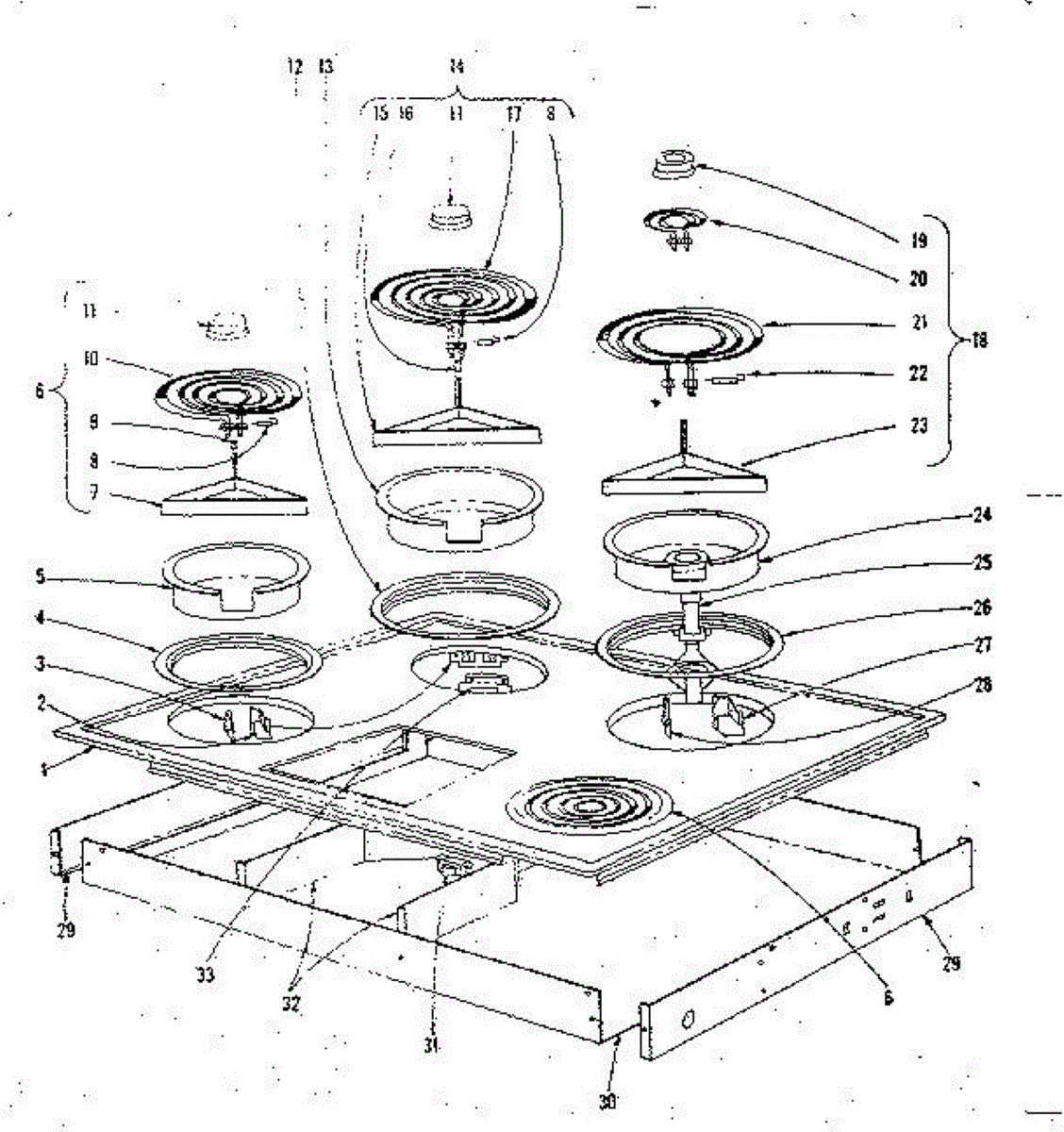 Parts for Kenmore 101.43711 (10143711, 101 43711): Cook Top Section Parts