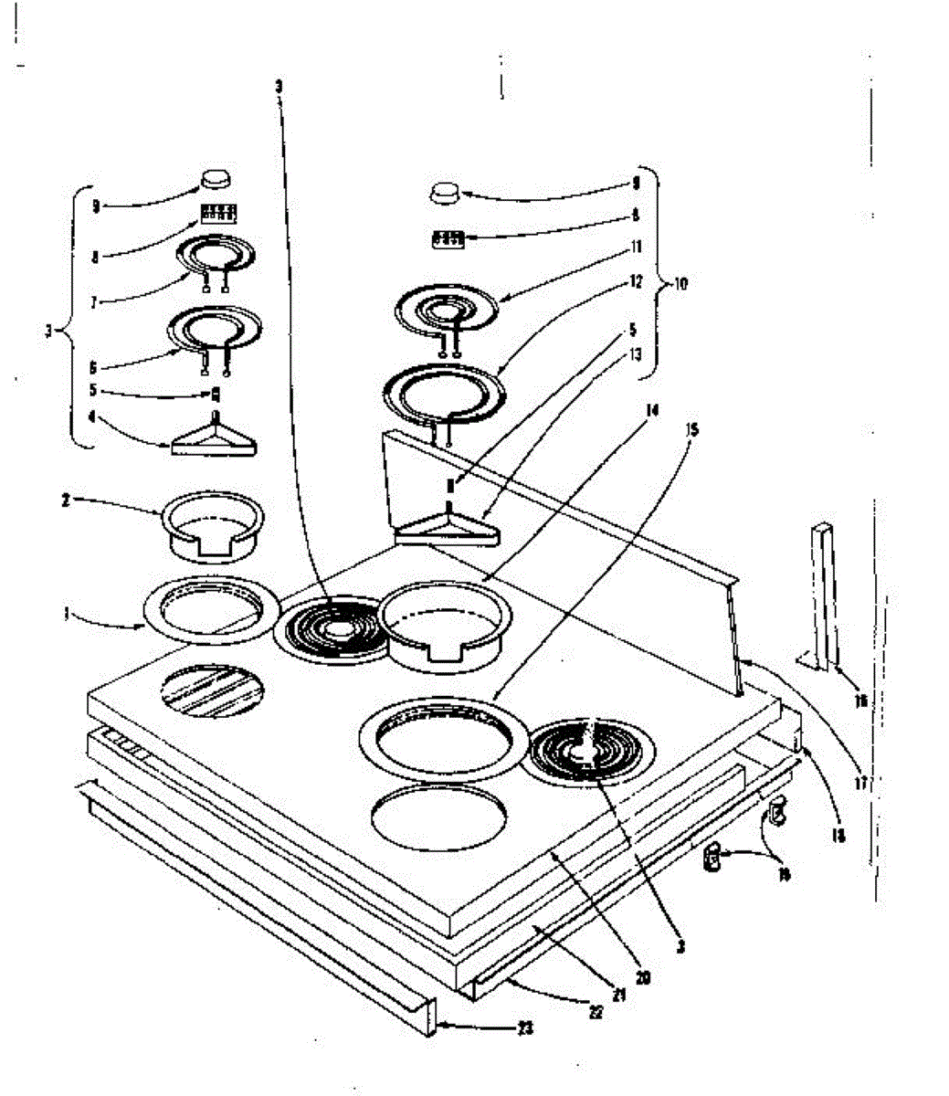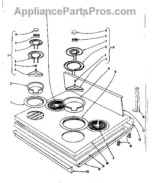 Parts for Kenmore 101.901620 (101901620, 101 901620): Cook Top Section Parts