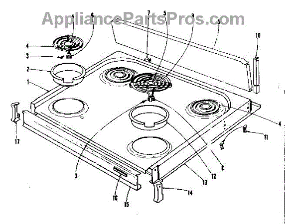 Parts for Kenmore 101.9016590 (1019016590, 101 9016590): Cook Top Section Parts